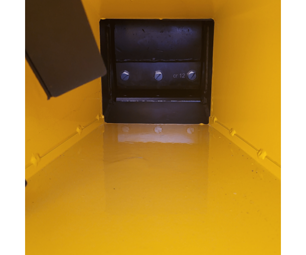 A calha inclinada por gravidade alimenta sem esforço aparas de relva, ramos, arbustos, composto e quaisquer outros detritos a eliminar. A lâmina de corte durável mantém-se afiada durante muito tempo, mas também pode ser virada quando for necessário substituí-la.